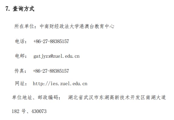 中南财经政法大学2024年澳门保送生招生简章
