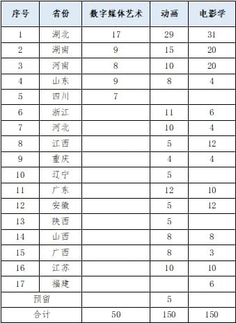根据《教育部关于进一步加强和改进普通高等学校艺术类专业考试招生工作的指导意见》(教学〔2021〕3号)、《教育部办公厅关于做好2024年普通高等学校部分特殊类型招生工作的通知》(教学厅〔2023〕10号)的有关规定和教育部关于中外合作办学项目的相关要求,结合学校实际,学校决定2024年继续招收数字媒体艺术、动画、电影学专业考生共350名。